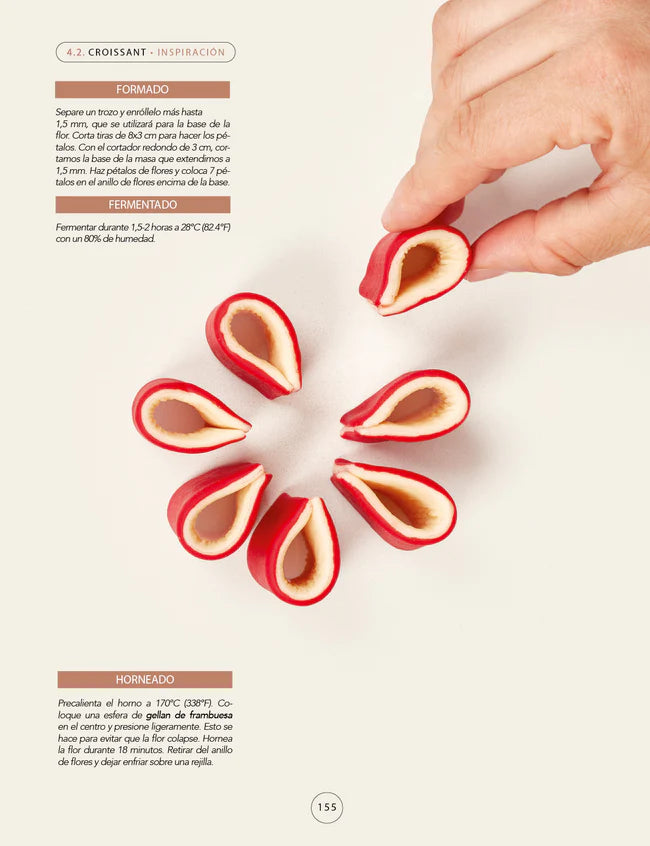 Para alimentar su creatividad, la sección Croissant Inspiration presenta el Croissant Clásico + 42 creaciones exclusivas, que muestran enfoques únicos de laminación adaptados a diferentes texturas y estéticas, rellenos únicos y decoraciones visualmente impactantes que superan los límites de la tradición, todas recetas a prueba de balas, rigurosamente probadas en nuestros laboratorios de pastelería y perfeccionadas a través de años de experiencia práctica en clases profesionales, lo que garantiza confiabilidad y consistencia para cada nivel de producción, listas para cobrar vida en su propia cocina.
